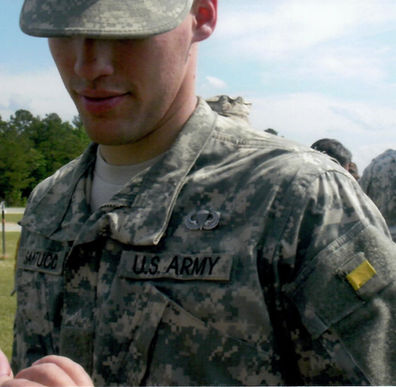 Our son, Anthony Santucci, has wanted to go into the military since he was a small boy. His father was in the Army, three of his uncles were in the Marines and one was in the Air Force. As a small child, he was always playing “army.” His grandfather gave him a pair of camouflage overalls that I mended to fit him. He also made a wooden rifle and mounted a scope on it. Anthony was around 8 years old at that time. He has been jumping out of, and off of, things since he was 2 years old.